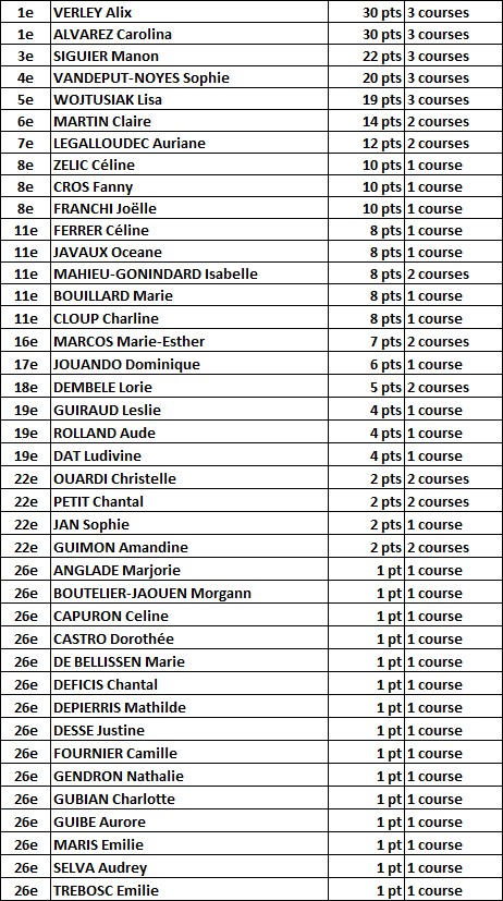 Classement provisoire féminin